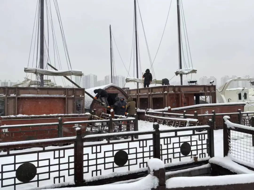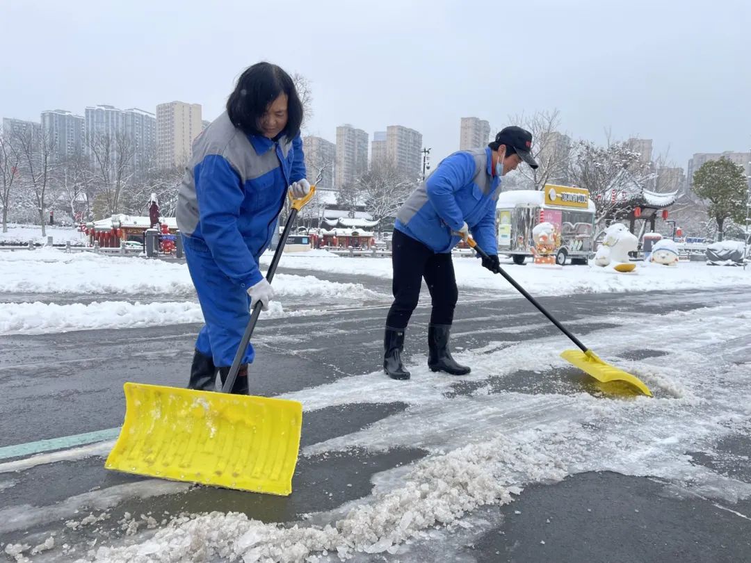 在里运河文化长廊清江浦景区、白马湖旅游度假区、板闸遗址公园、清江浦广场·漕运门、淮安老船厂、淮扬菜文化博物馆、新华印刷厂、清元停车场等处,,,,,,各部分、子公司全员出动、不舍昼夜,,,,,,各人拿起铁锨、扫把等工具,,,,,,分工明确,,,,,,配合默契,,,,,,冒着寒风,,,,,,整理着地面上的积雪以及冰封的路面。。。。。。虽然天气严寒,,,,,,冰冻形成的积冰整理难度大,,,,,,但集团干部职工们热情高涨、劲头十足,,,,,,经由一连、有序的除雪铲冰作业,,,,,,各景区冰冻所带来的清静隐患大大降低。。。。。。