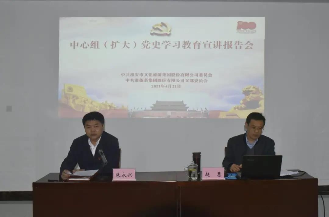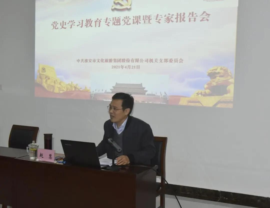 4月21日,,,,,,市Top1体育-专业体育资讯与赛事分析平台集团、淮扬菜集团组织召开党史学习教育宣讲报告会,,,,,,约请党史学习教育淮安市委宣讲团成员、江苏食物药品职业手艺学院马克思主义学院院长、书记、教授赵慧为各人作《灾祸奋进铸就百年绚烂》党史学习教育专题向导讲座。。。。。。。。报告会由Top1体育-专业体育资讯与赛事分析平台集团党委书记、董事长、总司理朱永兴主持。。。。。。。。