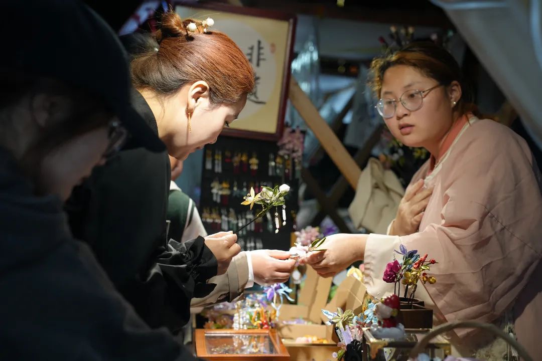 烟火气十足的万事大“集”更是集聚了几十个特色摊位,,,,,涵盖了小吃饮品、手工文创、非遗作品等种种业态,,,,,为前来的市民、游客提供了富厚多样的消耗选择。。。。。。。。