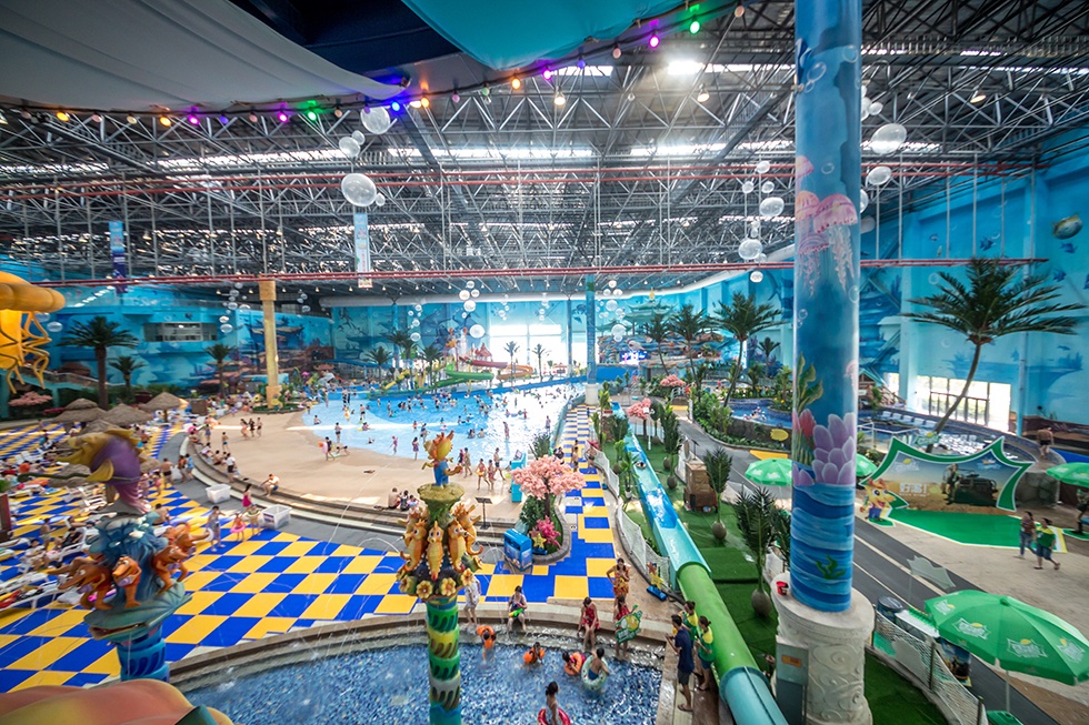 嬉水天下是苏北地区首个大型室内水天下,,,,,,由冲浪区域、儿童区域、滑道区域和浮潜区域等7个主题区域组成,,,,,,拥有30多种游乐装备,,,,,,包括大型造浪池、高速滑道、多组合滑道以及472米长的具有海洋极田主题故事特色主题漂流河。。。。。。。